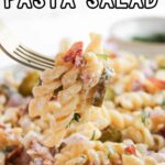 This Dill Pickle Pasta Salad can be kept in the refrigerator for up to 3 days in a sealed container. The flavor continues to build, but the bacon will soften the longer it sits. For the best texture, I suggest mixing in the bacon just before serving.