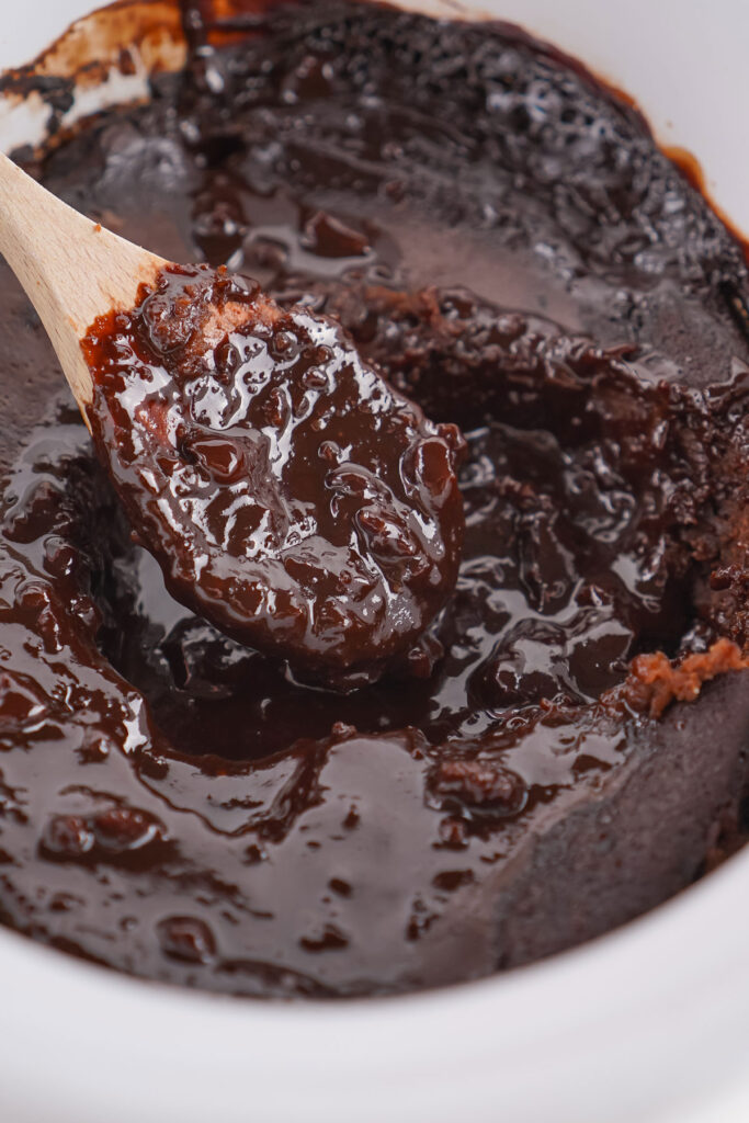 - Always cook on high heat – Low heat just doesn’t produce the same texture, so stick with high for the best slow cooker chocolate cobbler.